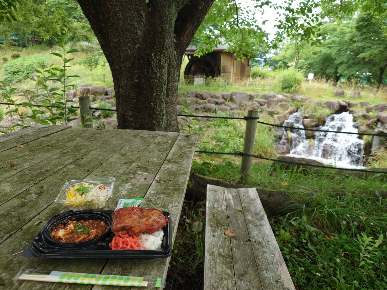 - 滝の近くで食事できるのでなかなか。