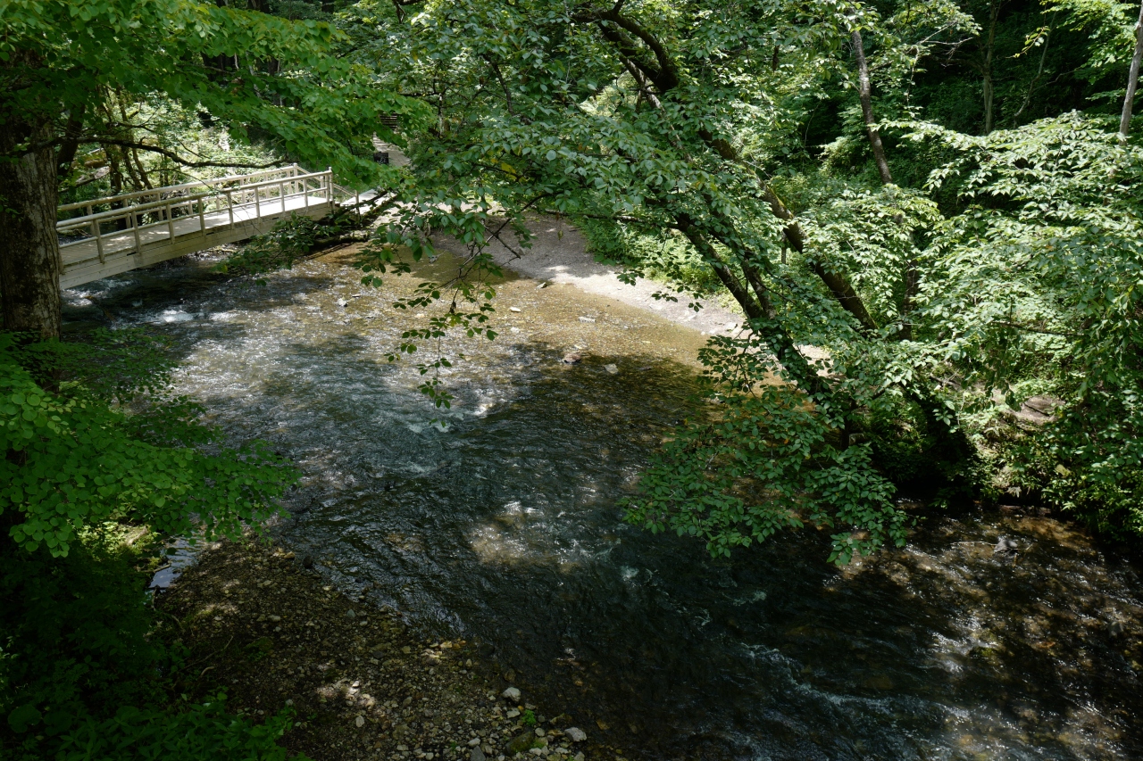 那須レンタカー旅の最後に、家族の希望で立ち寄り。入口に僅かなダート区間があるものの、その後はこの手の場所にしては「破格」とも言える2車線の道路を登ります。道路の終点に広い駐車場があり、雨水使用の水洗トイレやダム湖畔沿いにテーブルイスがあるので、ピクニックされてる方も多数いました。