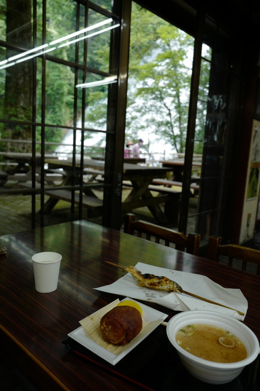 湯滝のすぐ近くにある、コンビニ併設のレストハウス。その場で焼いてる鮎の塩焼きが旨かった~!