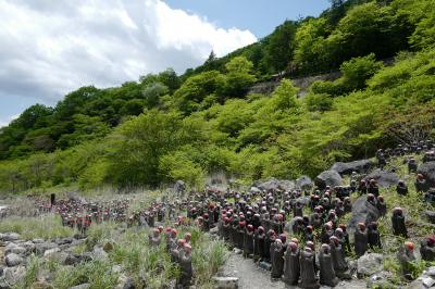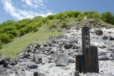 - 殺生石にはしめ縄が施され、手前にお地蔵さんが並ぶ場所も。なんか不思議な場所です。