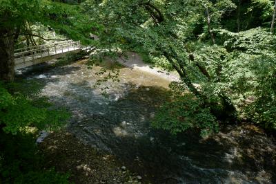 かつては滝の近くまで行けたようですが、現在は山のレストランの脇にある入口から行ける観瀑台にしか行けない状況。観瀑台まではほどほどのアップダウンのある山道を5分程歩くと到達。しかしながら観瀑台から霧降の滝までの距離がかなりあるお陰で、緑の中にちょこっと見えるだけ…有名な滝なのに「がっかり名所」感を抱かずにはいられませんでした。