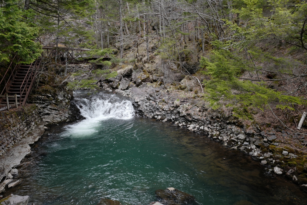 乗鞍観光センターと休暇村の間にある坂道の、中間地点位にある滝。私は休暇村から山道を20分ほど歩いて向かいかましたが、車で行く場合は坂の途中に駐車場があるようです。ただそこからでも狭くて急な階段を少し歩く必要があり、神経を使います。