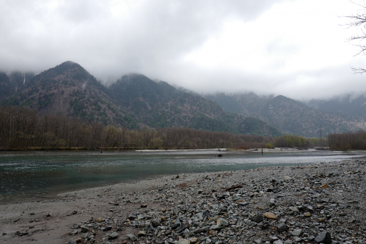 上高地の一番南側にある池で、ここから歩いて河童橋等のある中心部へ向かうのが王道のルートになっています。大正池の周辺は大正池ホテル以外に施設がなく、中心部よりも静かな印象です。池のほとりは広々としていて、天気や四季の移ろいで様々な景色を見せてくれそう。上高地に訪問した際は、まず立ち寄るべき池です。