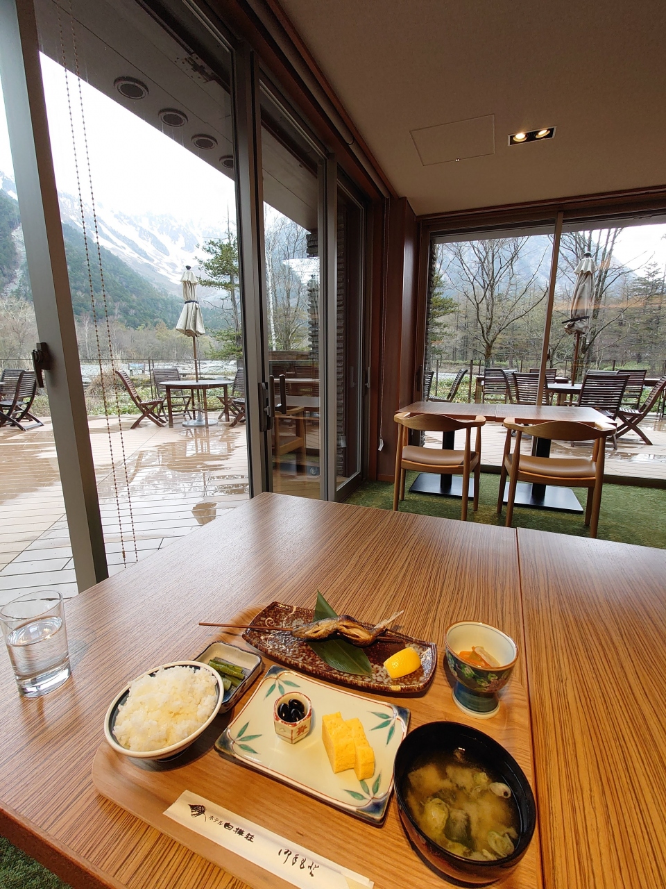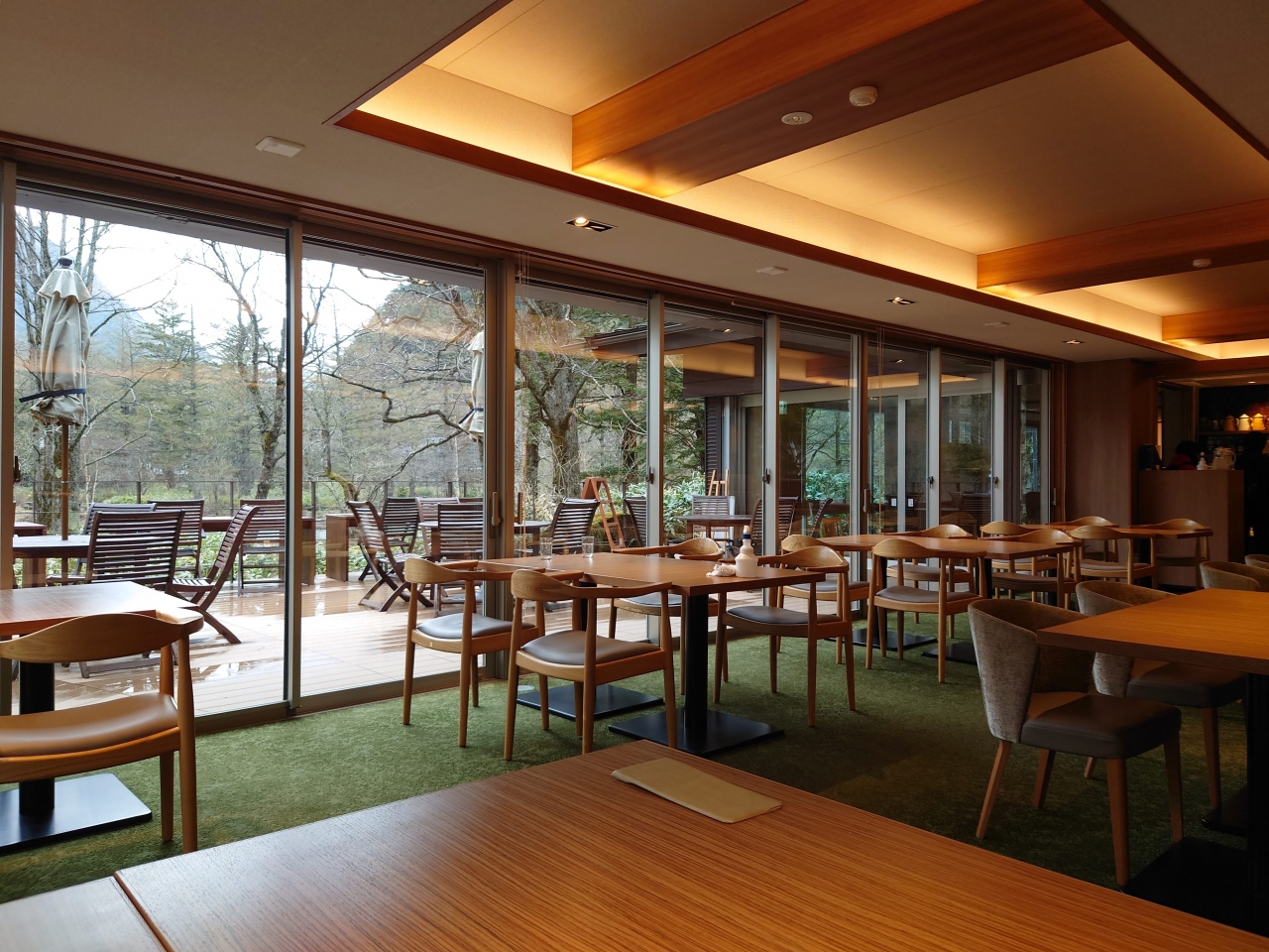 レストランは宿泊者以外でも朝7時から利用可能。雨宿りに利用させて頂き、大正池の眺めも良かったです。