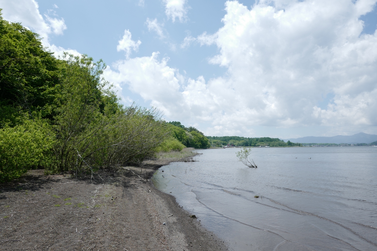 富士五湖で一番西にある湖で、籠坂峠を越えると御殿場経由で神奈川方面、河口湖方面に抜けると東京方面へのアクセスが抜群。よって訪問時もそれら地域から来られる方が多く、道路は結構な交通量でした。私の家からも比較的近い為幼いころから何度も車で来たことがあるのですが、今回は高速バスで行き、湖北西部のマウント富士入口から山中湖沿いを初めて歩いてみました。湖沿いに歩道が設けられていて歩きやすい場所もある一方、歩道すらない車道を歩かないと行けない場所も少しあり、交通量が多いので神経を使いました。アクセスが良い割に景色が良いのは魅力ですが、静かな場所が好きな私にはちょっと…と思ったのも正直なところ。車で来るなら良いですが、歩き前提で考えるとここより良い場所が沢山あります。