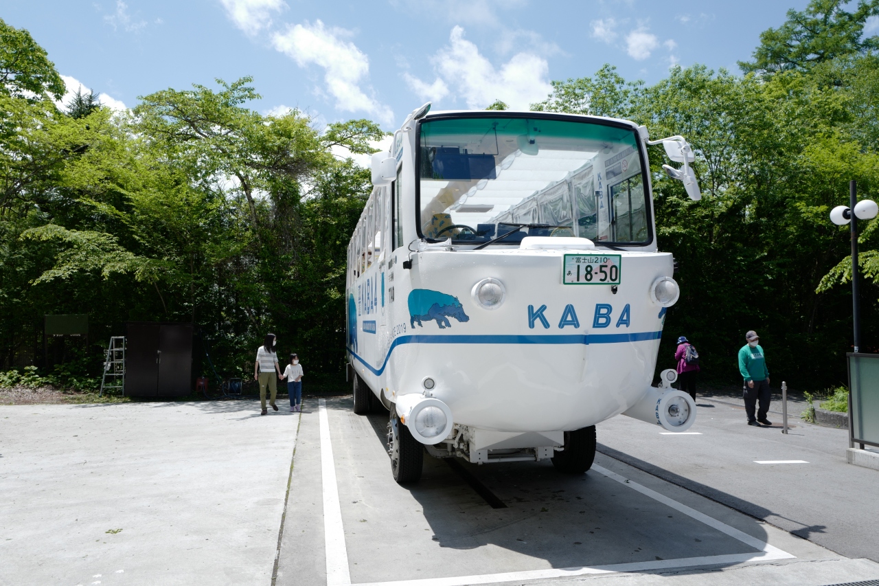 マリオットホテルに泊まった翌日、送迎バスを降りたら丁度良い時間があったので利用。まず「水陸両用のバス」というのは斬新で面白いと思います。ただ「陸」を走るのは旭日丘バスターミナルから山中湖にダイブするまでのほんのちょっとだけ。もう少し「陸」を走って欲しい気もあるので、「パノラマ台」位まで行くコースなんかがあっても良さそう。