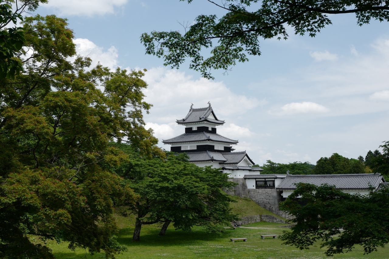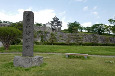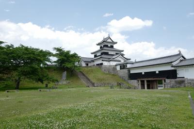 那須からレンタカーを使って訪問。白河駅のすぐ裏手にあり、ホームからも城の姿がよく見えます。駐車場も多数あるし、アクセスは文句無しです。城入口のエリアは芝生敷きの公園になっていて、遊び場やピクニックスポットとしても重宝します。