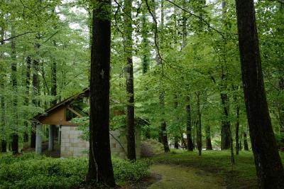 - 新緑に囲まれた道は良かったのですが、最後の「赤い鳥小鳥池」は水無のじゃぶじゃぶ池で「がっかり名所」感あり。