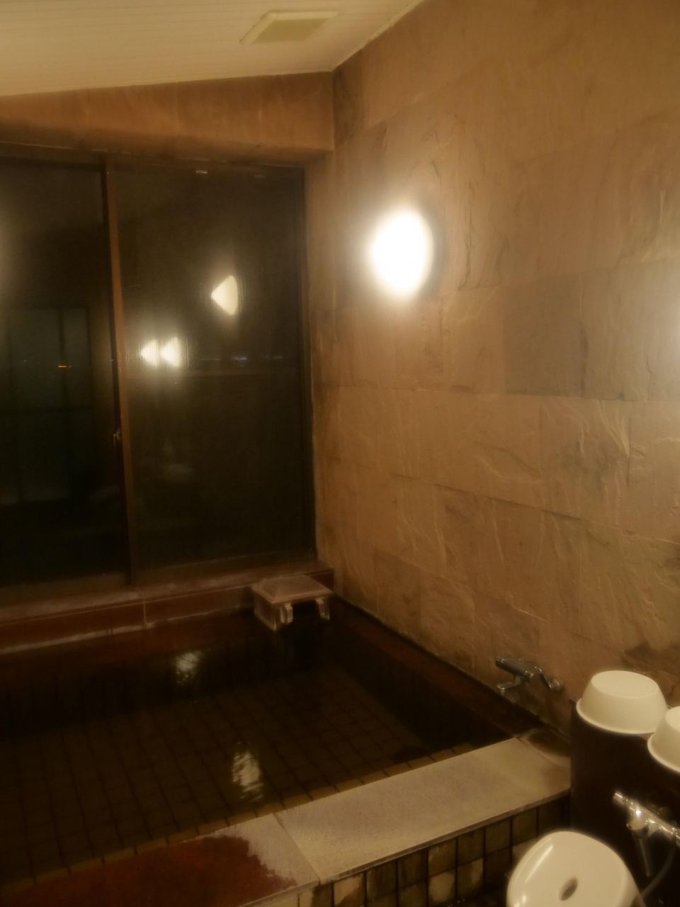 温泉は泉質は良いのですが正直微妙。併設されている日帰り温泉施設の大浴場の利用時間ですが、夜が21時まで、朝が8時からとなりそれ以外の時間は「貸切風呂」として使う小浴場が男女別風呂になり、それを使うことになります。しかし小浴場は男2人でも狭さを覚えるほどのものなので、見知らぬ方が来たらちょっと…といったところ。