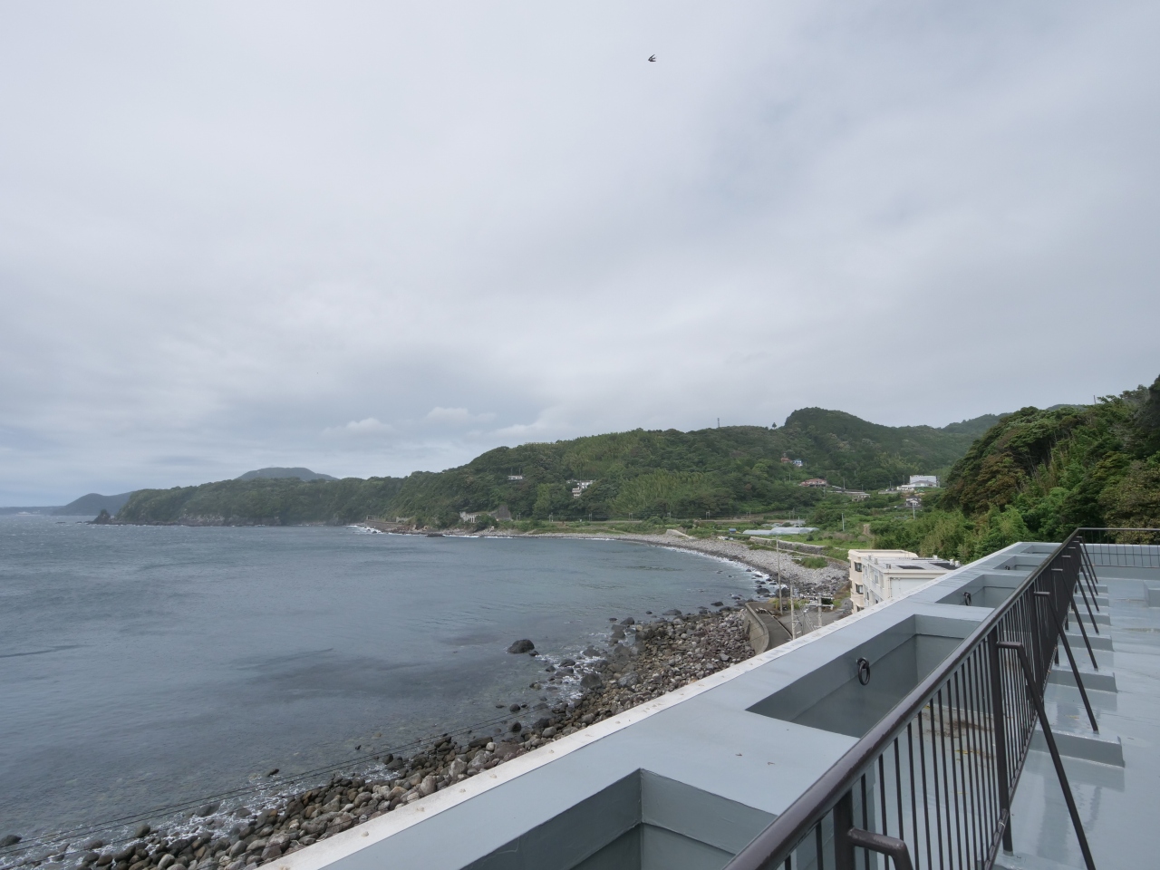 そして期待していた「眺め」ですが、屋上が展望台として開放されており、そこからは電線等の障害物に邪魔されない「抜群のオーシャンビュー」が堪能できます!更に海岸線を通る「伊豆急線」もバッチリ見え、期待を裏切らない素晴らしい眺めに大満足でした。