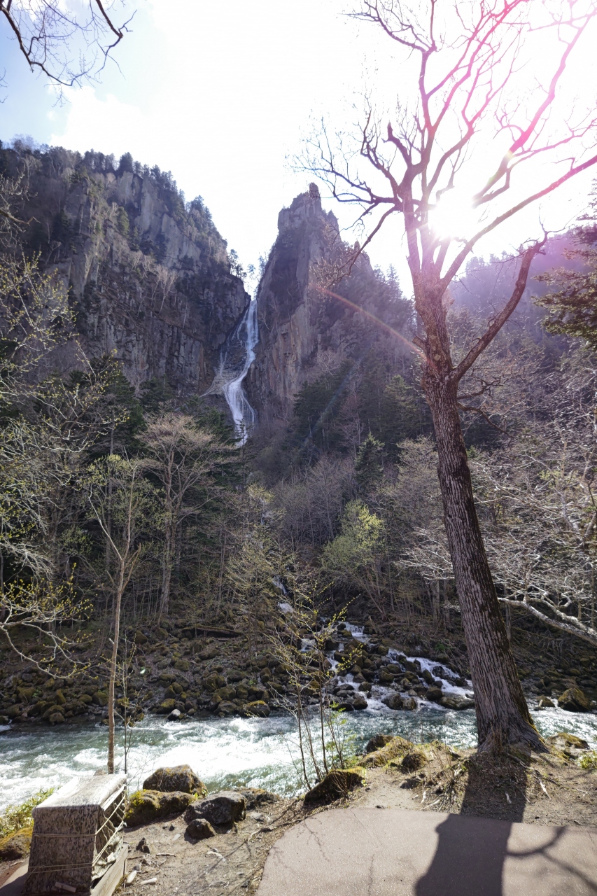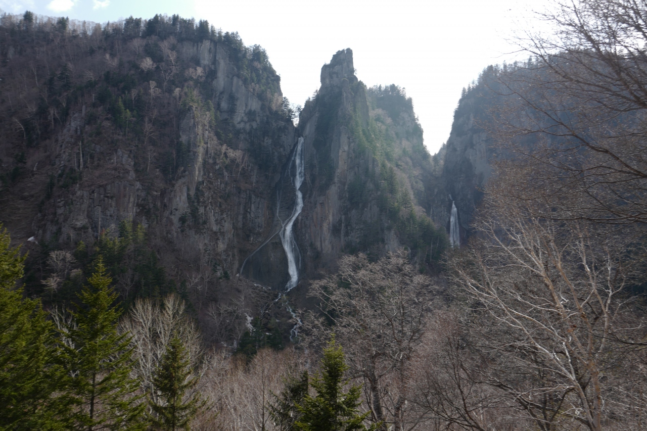 層雲峡温泉のやや東にある観光名所で、観光バスの泊まれる駐車場や売店なども整備されています。観瀑は駐車場近くの遊歩道から見るだけでも十分綺麗で、ドライブ休憩の感覚で気軽に楽しめます。その他急な階段を上がって行ける観瀑台もあり、こちらに登ると銀河の滝脇にある流星の滝もよく見えるそう。時間があるならこちらの観賞もオススメです。