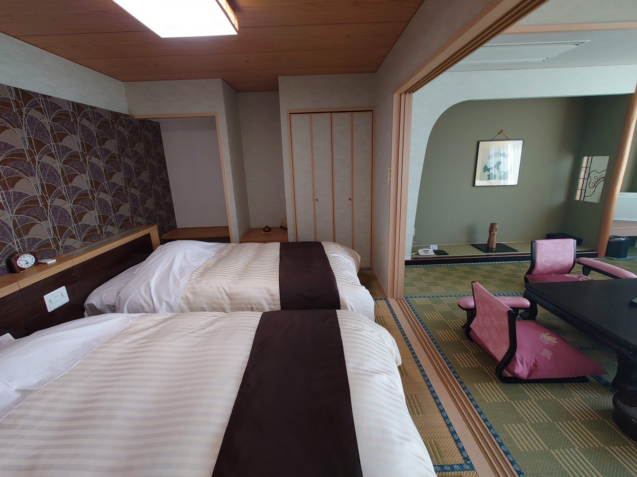 - 6階の和洋室は綺麗で広く、網走湖のレイクビューも最高で文句なし。