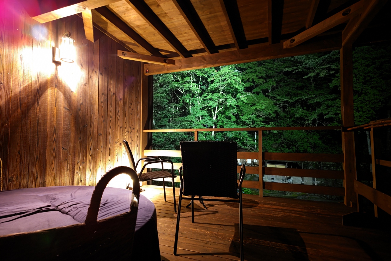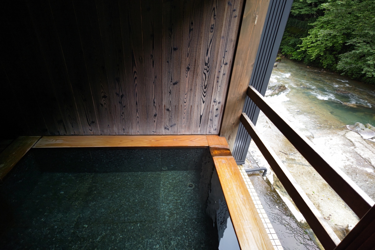 - 部屋の下にある露天風呂は四万川ビューの絶景を終始独占!これは最高でした。