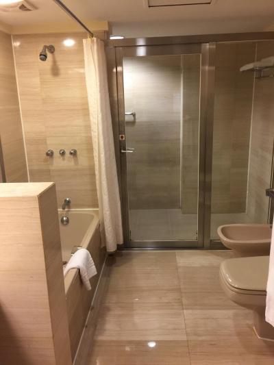 松山空港からホテルまではMTRの乗換を含めて30分弱でしょうか、松山空港利用者には便利だと思います。今回はデラックスルームの予約でしたが、エグゼクティブスイートにアップグレードして頂けました。フロントに日本人はいませんでしたが会話に不自由することはなく、また隣接するビルに7-ELEVENがありますのでちょっとした買い物には便利です。食事は全て外食としたためレストランの評価は出来ませんが、総じて良い印象を受けました。
