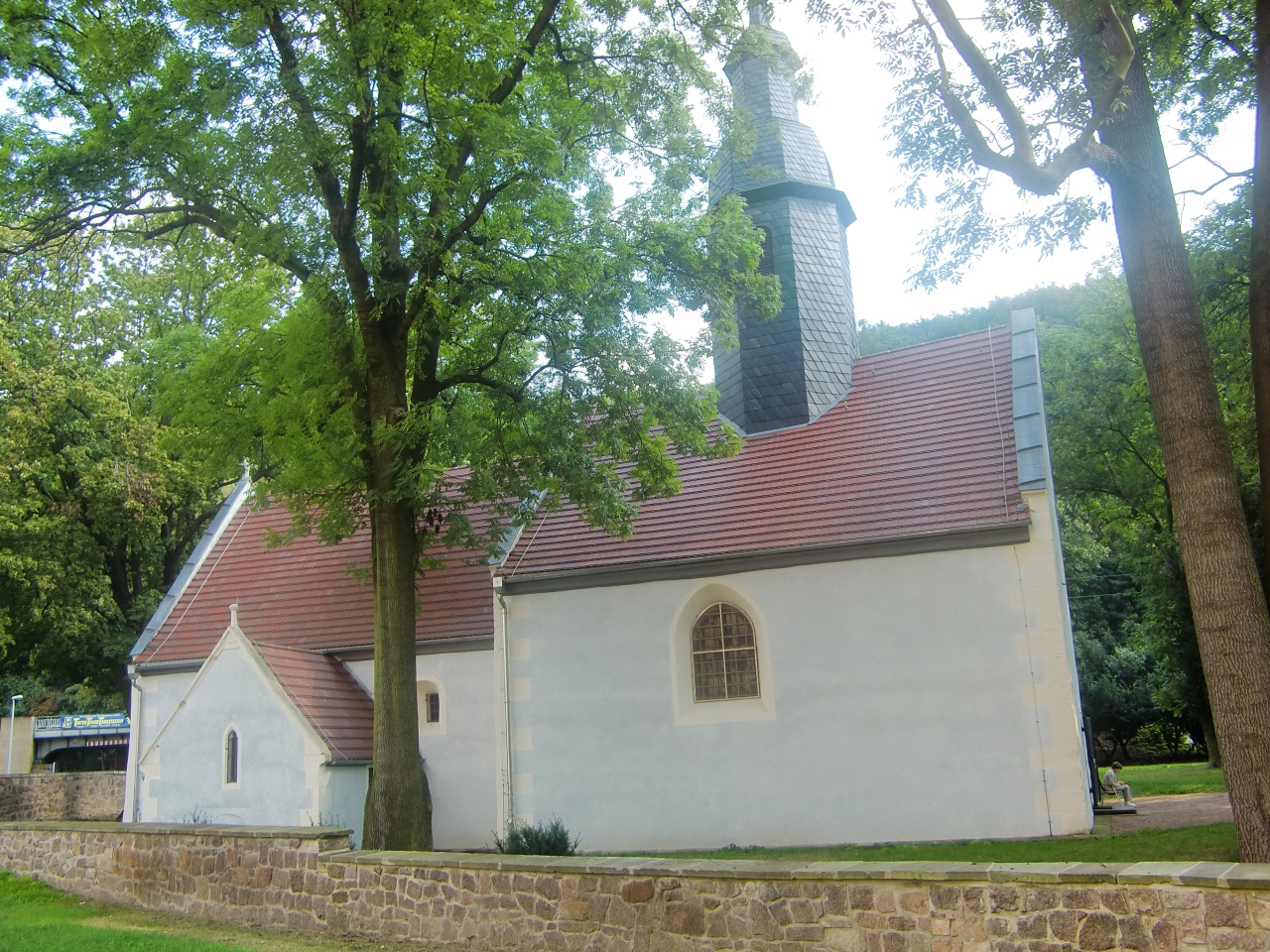 磁器工場から駅方面に歩いて戻る途中の公園の中にひっそりと建つ小さな教会。