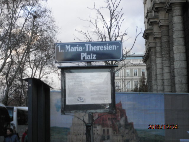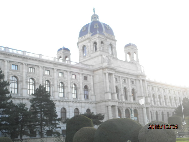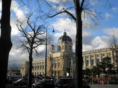 中央にマリアテレジアの像が建ち、美術史美術館と自然史博物館の華やかな建物が向かい合う、広場です。訪れたときは、クリスマスマーケットで、たくさんの出店が並び、地元の人や観光客でとてもにぎわう広場になっていました。