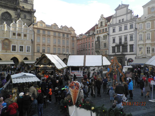 プラハのあちらこちらでクリスマスマーケットがありました。旧市街広場や、ヴァーツラフ広場など、華やかで、にぎやかです。クリスマスの雑貨や、ホットワインなどいろいろなものがあり、みているだけでも、わくわくしました。どこも、とてもたくさんの人でにぎわっていました。
