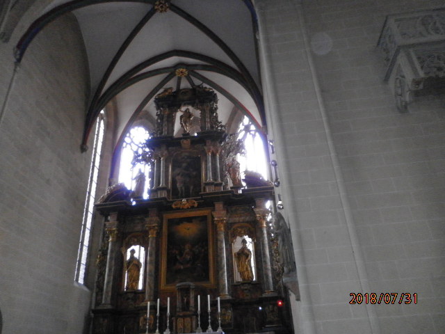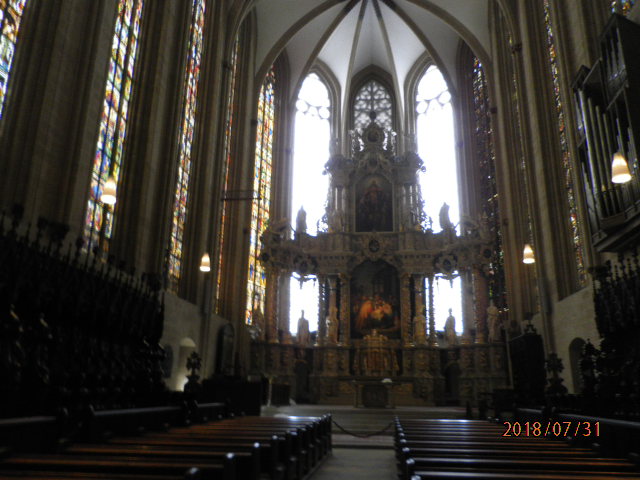 小高い丘の上にセヴェリ教会と並んでいます。入口には、12使徒の彫刻があり、聖堂のなかには、14世紀に造られた美しいステンドグラスもあり、見ごたえがあります。この大聖堂と、セヴェリ教会の2つの教会は、エアフルトのシンボルのようです。