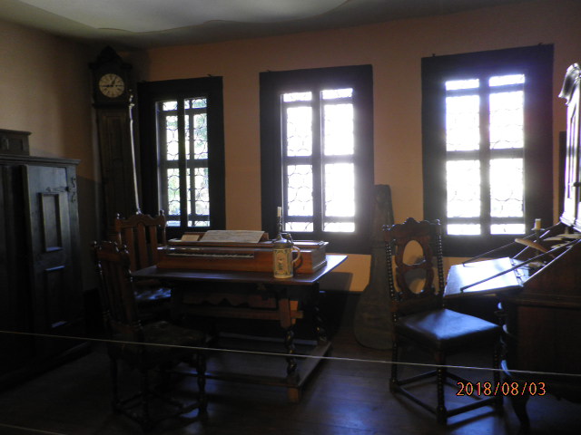 アイゼナハ旧市街からは、かなり離れたところにあるアイゼナハ出身の詩人ロイターの館です。ガラス張りの部屋の中には、ワグナーの楽譜や資料がたくさんありました。2階は詩人ロイターの部屋が残されていました。街から遠いこともあり、場所がわかりにくかったです。