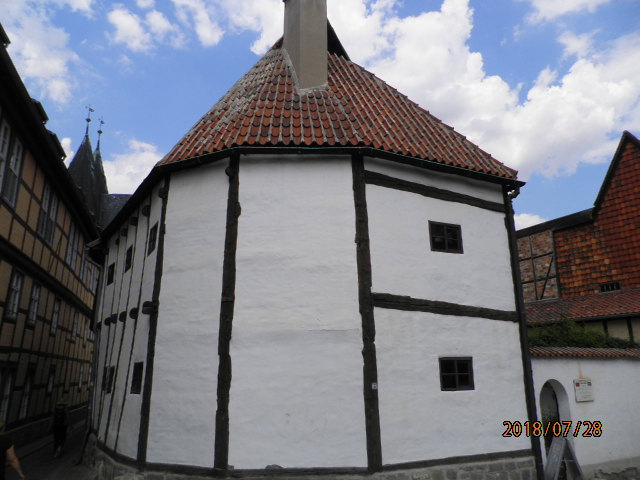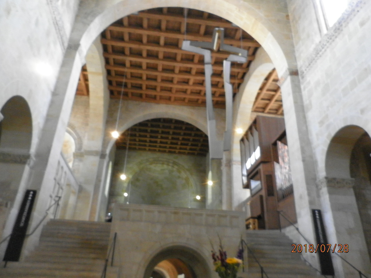 クヴェトリンブルクの城山といわれるところにある古い教会です。日本語の解説のシートを貸してもらえて、それによると、最も古い教会のひとつで、「クリプタ」といわれる礼拝堂には、ハインリッヒ1世や妻マティルダが眠っていることや、教会の歴史、建築様式などが書かれていて、よくわかります。