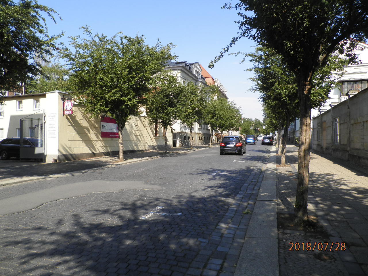 クヴェトリンブルク駅から、旧市街に向かっている通りです。旧市街の木組みの家が並ぶ街並みとは少し違う雰囲気ですが、落ち着いた街並みがつづいる石畳の通りです。道の両側には、わりと大きなおしゃれな建物がならんでいました。