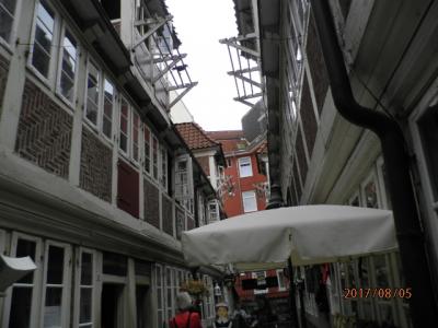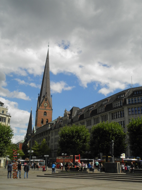 外見はどっしりとした印象で、中は明るく装飾のきれいな教会です。塔の上にのぼるのは、一人5ユーロですが、とてもハンブルク港や街並みがよく見えて、とても気持ちが良いです。教会近くに、「旧商工組合福祉住宅」という、かつて商人の未亡人のために建てられたという住居があります。今は、お土産物屋、レストランになっています。ガイドブックに載っている番地を頼りに探しましたが、わかりにかったです。