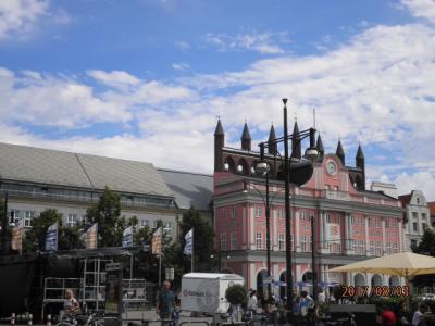 ロストック市庁舎や、聖マリア教会があり、カフェなども並ぶ広場です。市庁舎の前をトラムが通り、広場には、果物、野菜、雑貨など色々な出店が並ぶ日もありました。子ここからショップやレストランの並ぶにぎやかなクレッペリーナー通りがクレッペリーナー門へと延び、旧市街へと行きます。ロストックの観光の起点となる広場です。