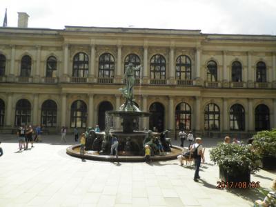 横に長い市庁舎の前に広がる大きな広場です。この広場からみる市庁舎に圧倒されます。広場には、出店があったり、大道芸人の姿もあり、観光客の多いにぎやかなスポットです。ここから、歩いて運河の高級ショッピングモールや、アルスター湖に行くことができます。
