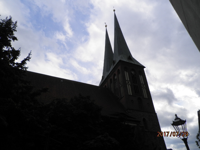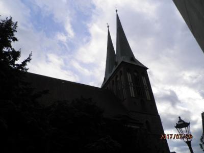 ベルリンの赤の市庁舎近くの閑静な住宅街にある「ニコライ地区」にあるベルリン最古の教会です。2つの尖塔のあるレンガ色の教会ですが、今は、内部は博物館となっているようです。この辺りは、ベルリンの中心地からは少し離れ、落ち着いた雰囲気です。