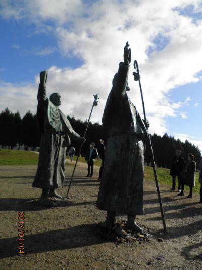 ポルトガルツアーで訪れました。巡礼者が長い道のりを歩いてきて、ここで初めてサンティアゴデコンポステーラの大聖堂が遠くに見えて、歓喜するというスペイン語です。巡礼者の像が大聖堂の尖塔を指さして立っていました。