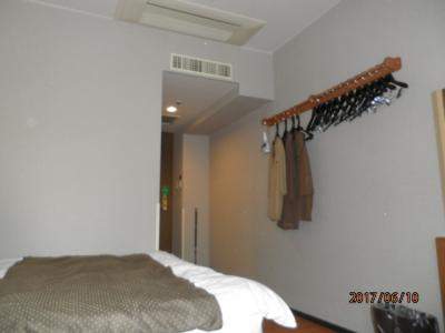 都会の雑踏のなかにあるホテルです。窓の外は阪神高速ですが、その騒音はあまりなくてよかったのですが、部屋は狭いです。夜は、無料で「よなきそば」がふるまわれます。大阪市内で温泉のあるホテルは少なくて、貴重なのかもしれません。