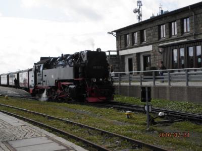 ブロッケン山に行く蒸気機関車に乗るために、ベルニゲローデに来ました。この駅は、大きなターミナル駅と違い、こじんまりとしていて、駅前の広場は、とても静かで、のんびりした雰囲気です。ほぼ正面の山にはヴェルニゲローデ城が見えました。ドイツ鉄道に隣接して、ハルツ狭軌鉄道のベルニゲローデ駅がありました。
