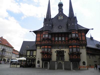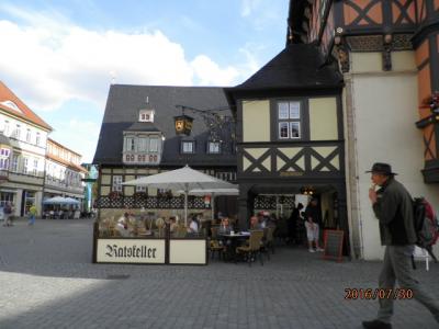 ベルニゲローデ旧市街の中心、マルクト広場にあり、たくさんの木組みの建物の中でも、2本の塔がとても目立ちます。内部の見学ができないのは、とても残念ですが、地下は「ラーツケラー」というレストランになっています。
