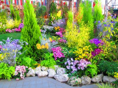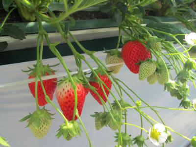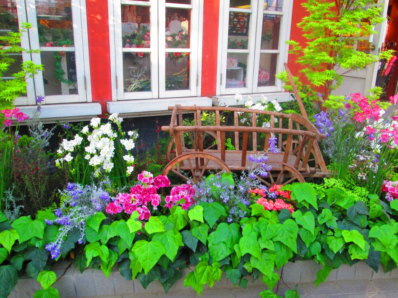 温室の中は、ガーデニングの参考にしたい物がたくさんありました。グッズもたくさん売っています。