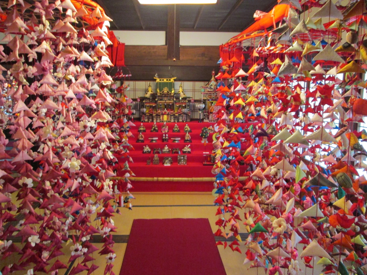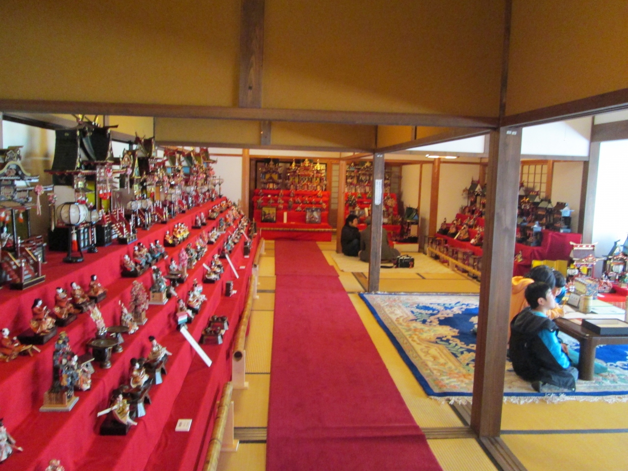 お雛様を前に座り込んで団らんしているグループもいました。ほっこり幸せそう。着物を着飾った子供も記念撮影していました。