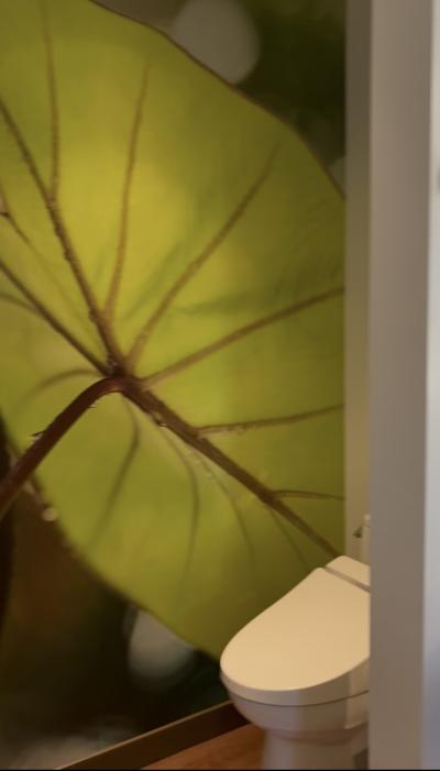 トイレはTOTOです。横の壁は大きな絵がプリントされています。