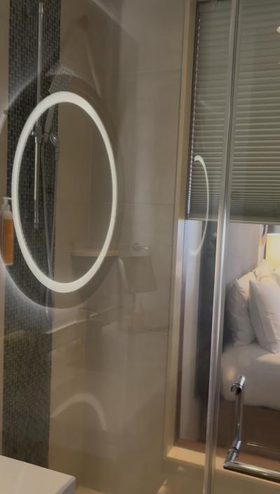 今回はバスタブ無しのシャワーのみ。ドア付きでトイレとは別なので床がビシ...