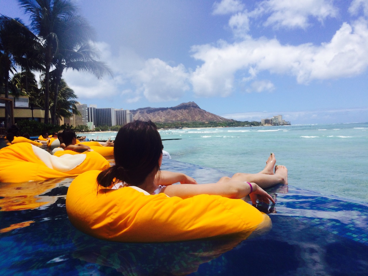 プールからの景色は申し分なく、綺麗な海越しに見えるダイヤモンドヘッドは、ハワイに来たーーーー!!!!