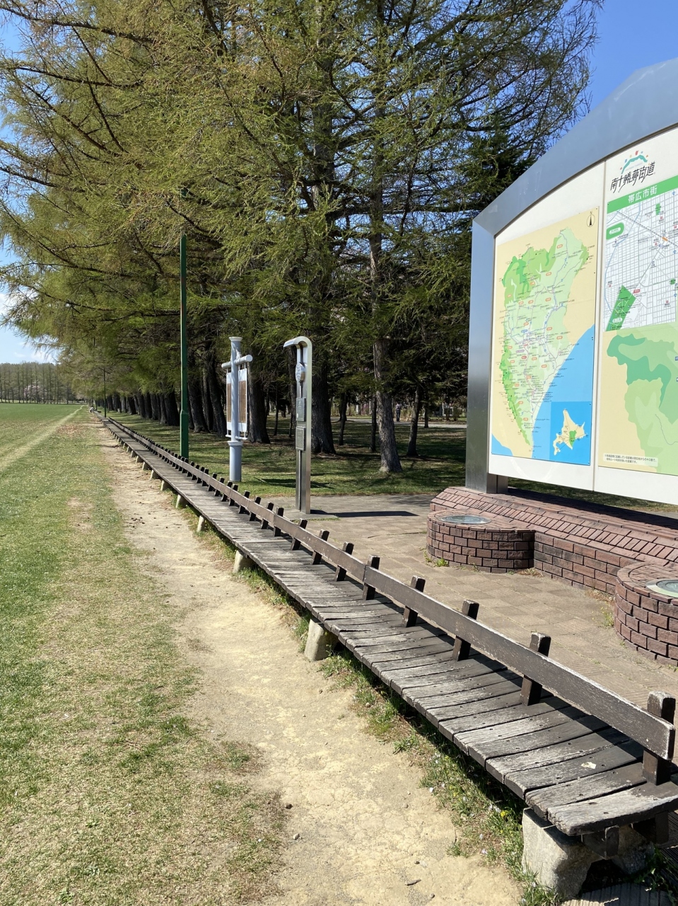 帯広駅前にから徒歩で30分くらいです。週末はバスの本数が少ないので時間と体力のある方は歩くか自転車を借りたら良いと思います。エゾリス目当てで2日に渡り訪れましたが、とても広くて運動にもなると思います。400mベンチはとてつもない長さでした。