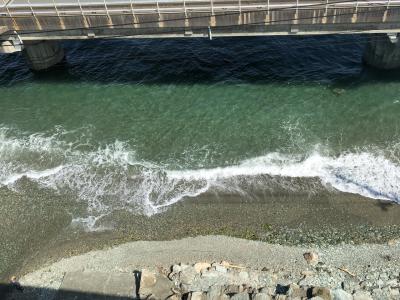 海の上を電車が通てきます