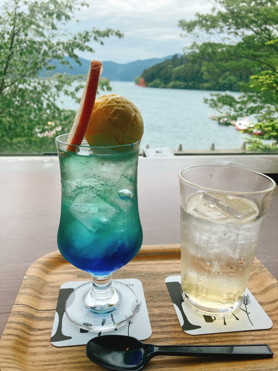 芦ノ湖を望む景色を楽しみながらのカフェ
