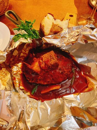 ハンバーグは肉肉しく、上にのってるビーフシチューは柔らかく、ソースもとっても美味しい!