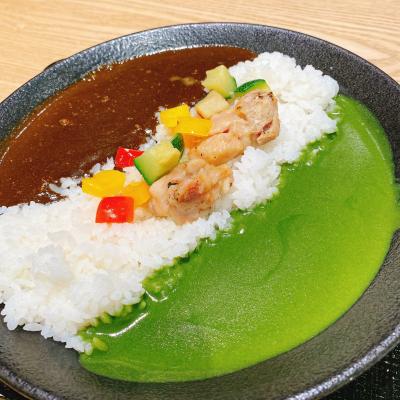 カレー好きが高じて、宇治茶あいがけカレーにしました。