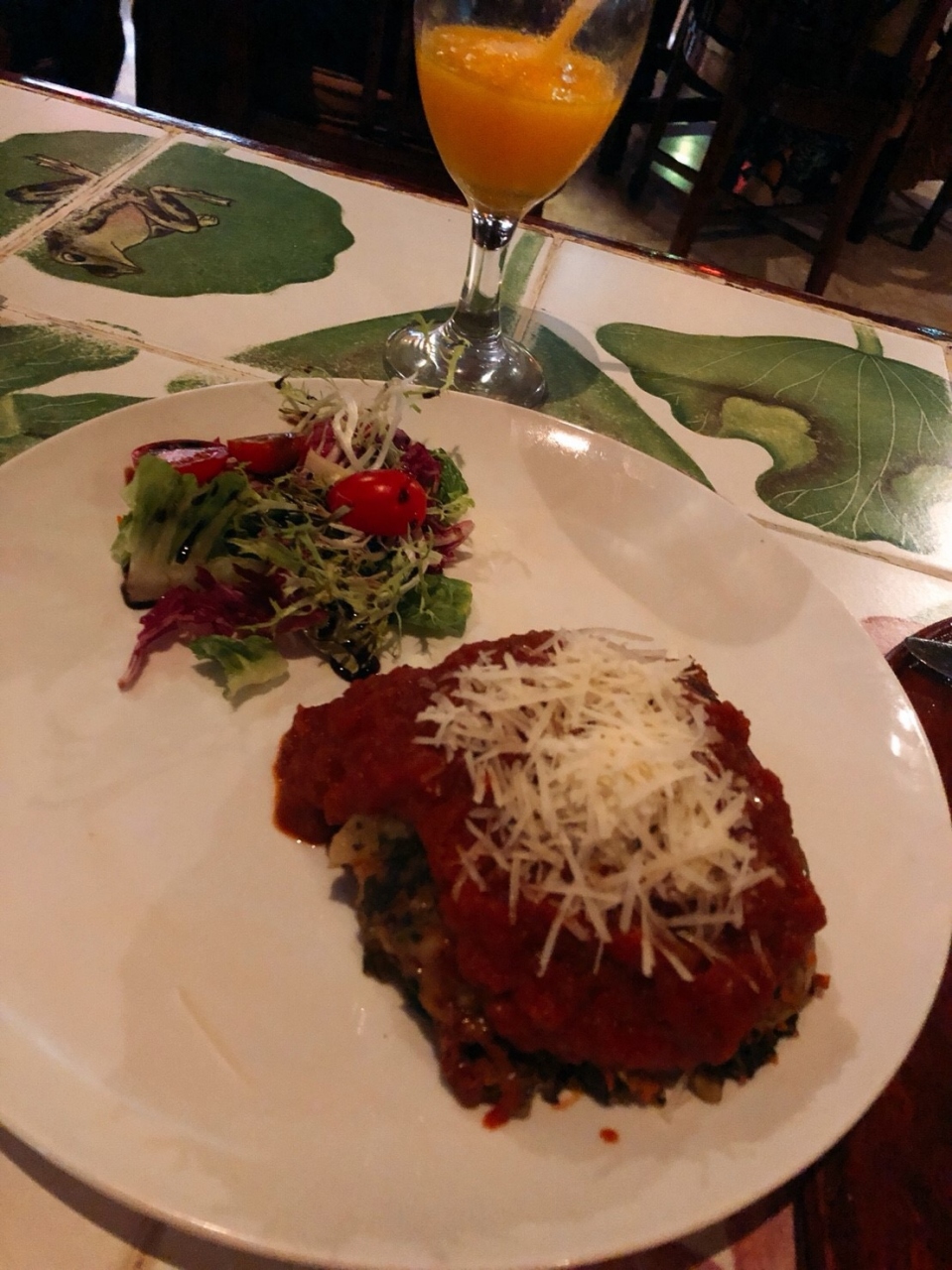 マンゴージュースとスイカジュース、ラザニアを注文。