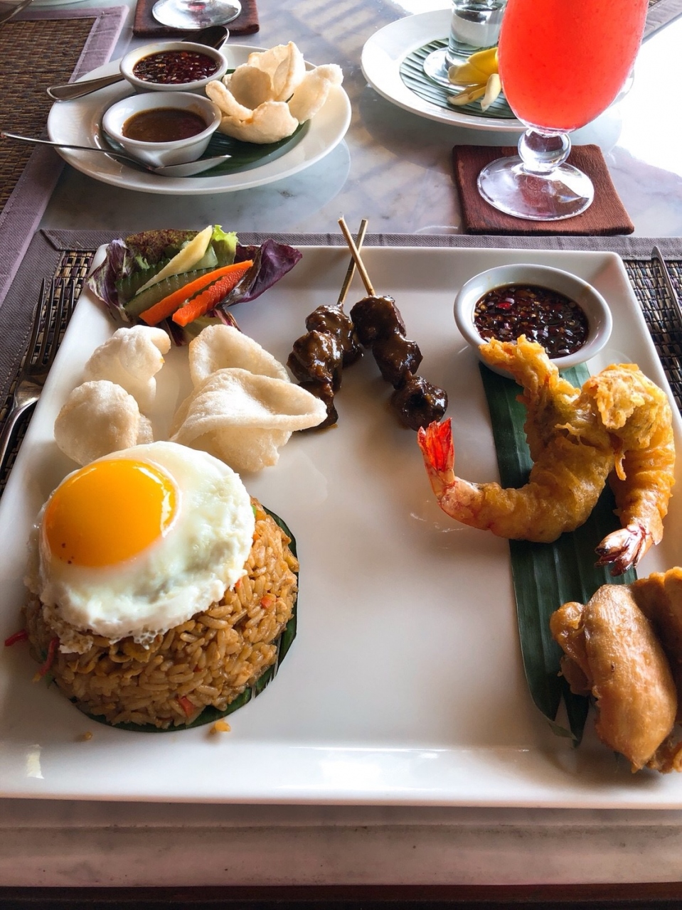 - サテ肉が固かった。ナシゴレンの味付けが濃い。