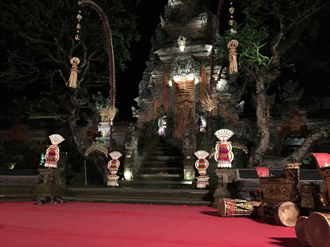 間近で、初めてのバリ舞踊を、ライトアップされた寺院をバックに見ることができ感動しました。
