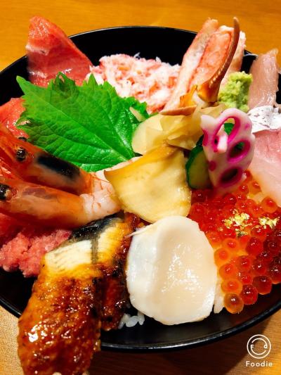 近江町市場で豪華な海鮮丼を食べたくて色々下調べしました。当日、どこも混んでいて行列ができていたのですが、ここ「ひら井」がタイミングよく空いていて選びました。