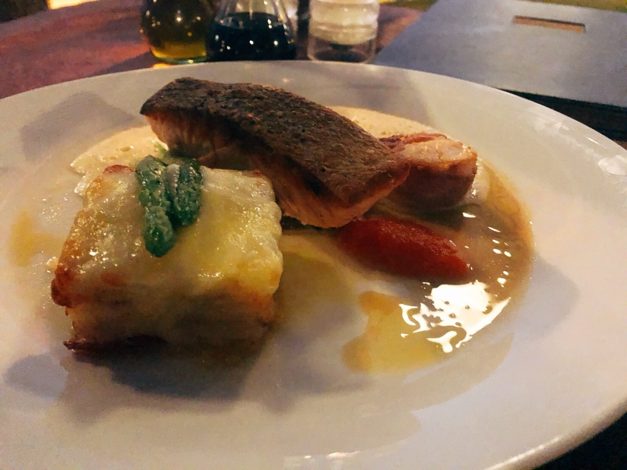 サーモンソテーは、外がカリカリで身はフワフワで、付け合わせのポテトもよい味付けでした。