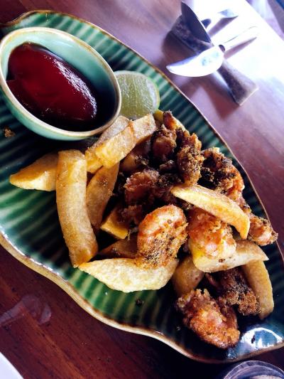 最後に注文したエビのから揚げがスパイシーで、美味しかった。