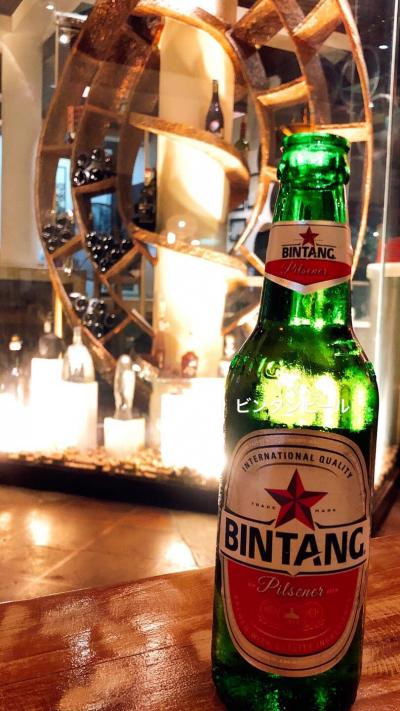 バリの食事は量が多くて残してしまうので、ビンタンビールとボルケーノピザの注文にしました。ちょうどよかったです。